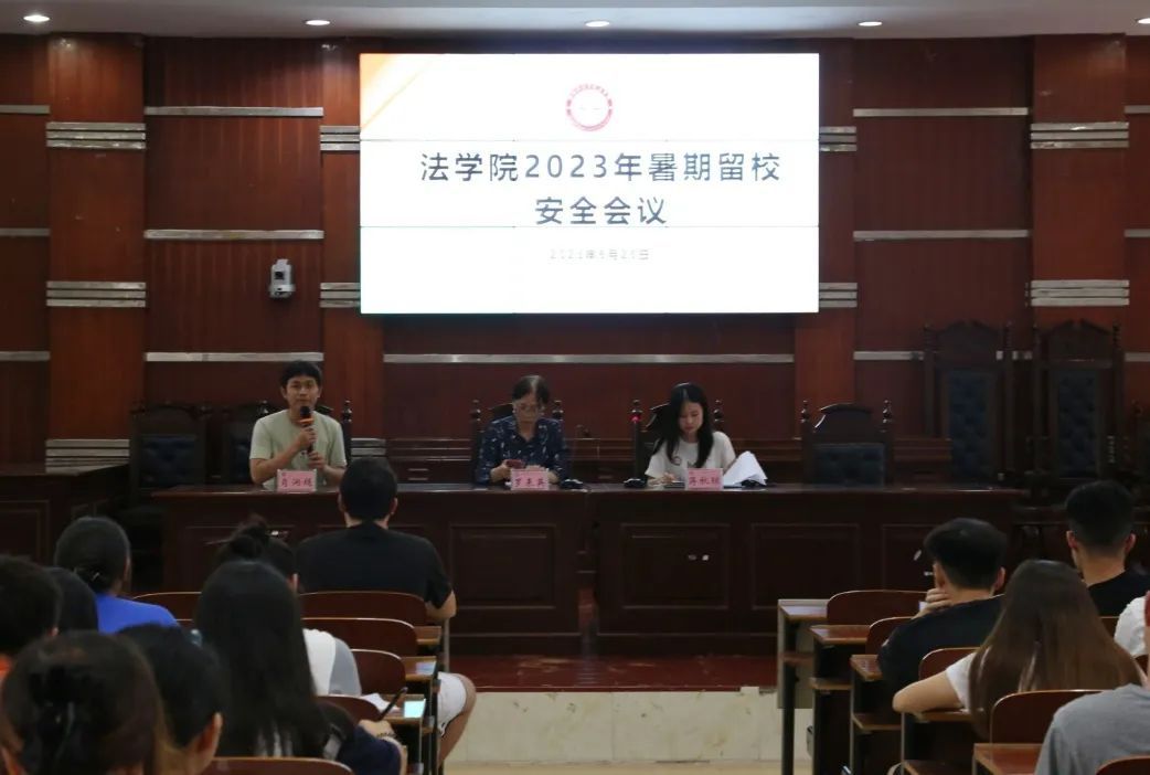 6月25日下午,yl8cc永利官网于东校区模拟法庭召开2023年暑期留校安全教育会议。yl8cc永利官网党总支副书记罗耒英,辅导员肖润超、蒋秋琼出席此次会议,yl8cc永利官网2020级暑期留校学生参与本次会议。