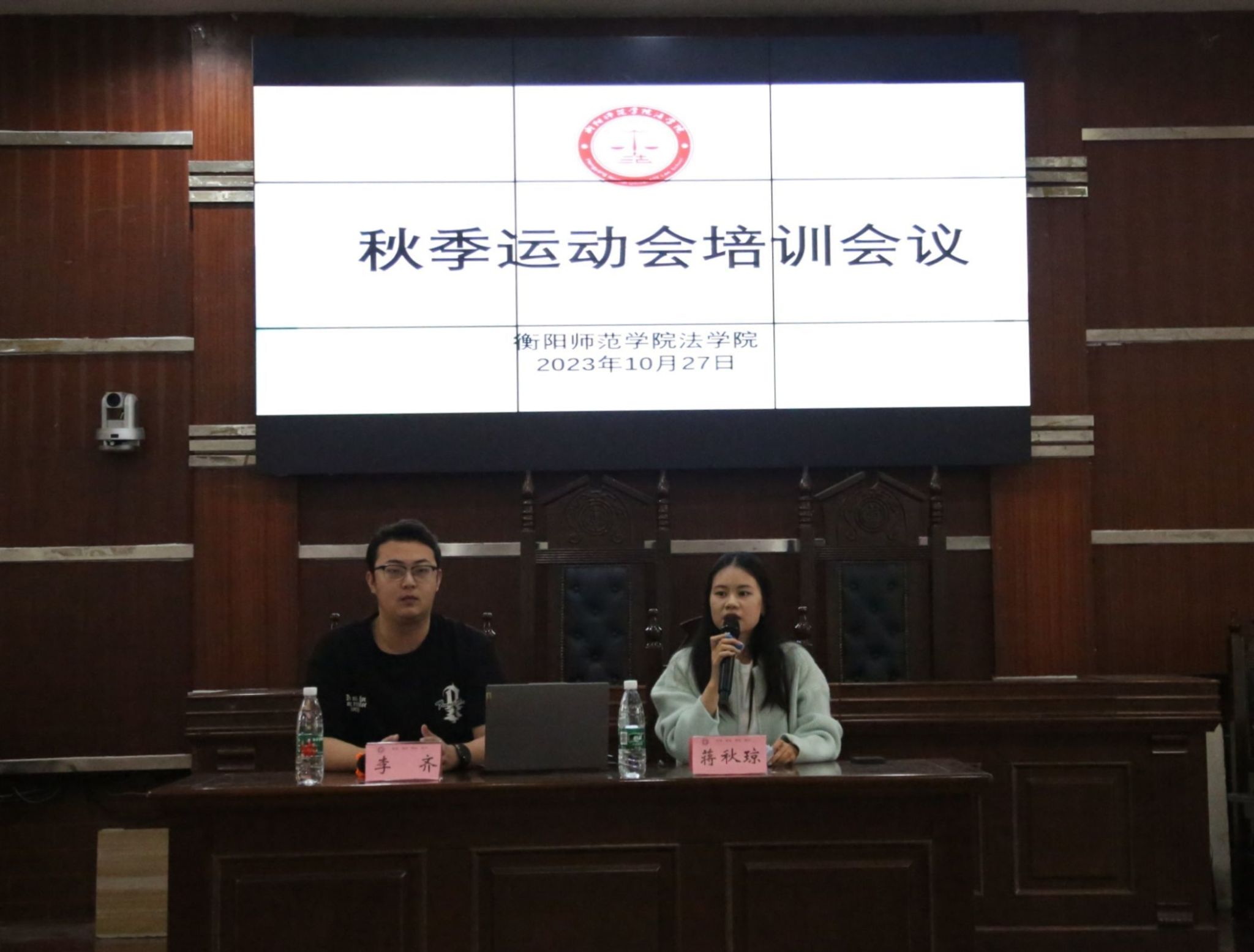 10月27日,yl8cc永利官网于东校区模拟法庭召开秋季运动会培训会议。辅导员蒋秋琼与学生会执行主席李齐出席此次会议,yl8cc永利官网全体运动员和志愿者参加本次会议。