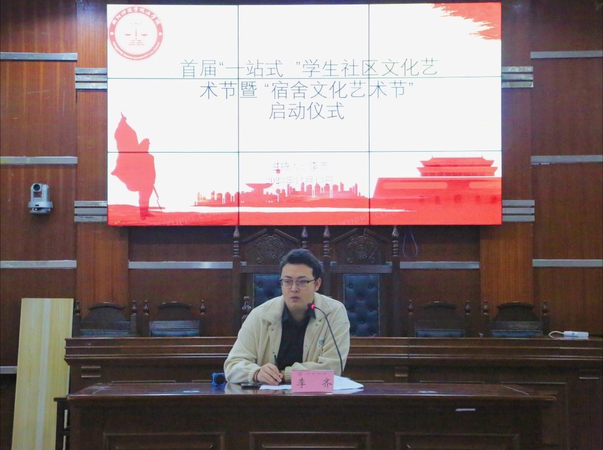11月13日下午,yl8cc永利官网于东校区模拟法庭举行首届“一站式”学生社区文化艺术节暨2023年“宿舍文化艺术节”启动仪式,yl8cc永利官网团委学生会执行主席李齐与各班生活委员参加此次仪式。