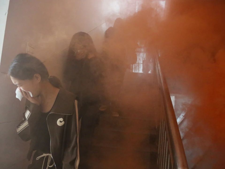 随着消防警报的响起,演练正式开始。负责人有序组织同学们分方向、按路线迅速撤离到指定安全区域。演练过程中,学生们有序下楼逃生,做到“弯腰、扶墙、捂口鼻”。全体同学低头弯腰有条不紊地迅速撤离,中途未出现意外情况。
