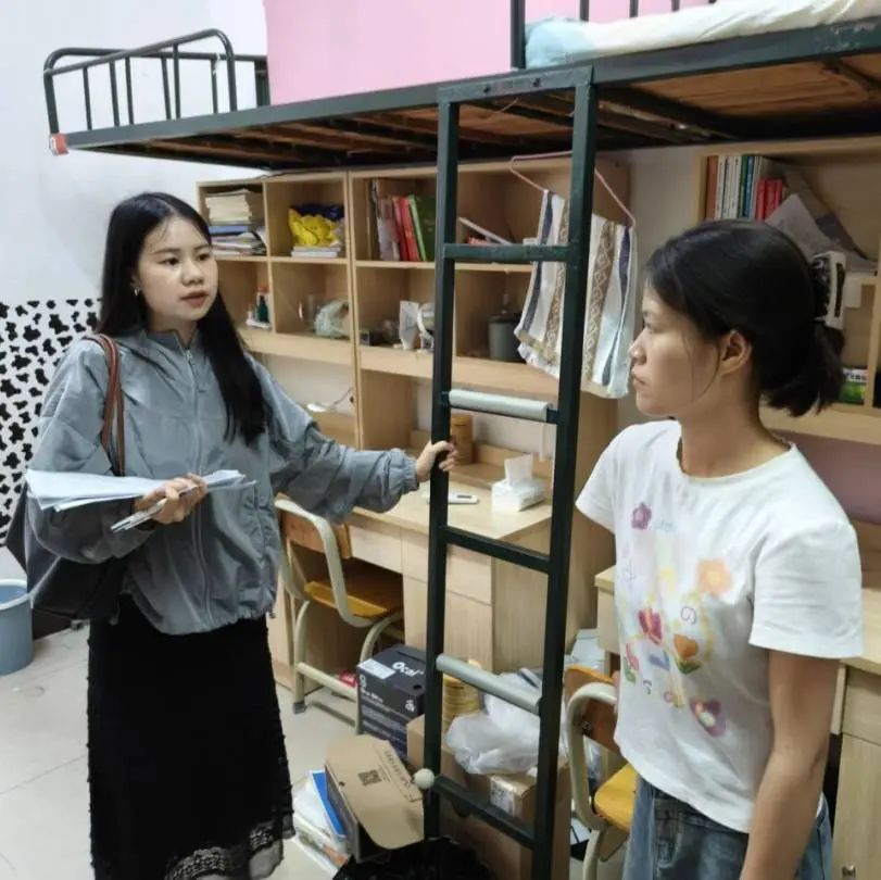 为进一步了解毕业生的真实情况,切实做好毕业生离校前的教育、管理和就业工作。5月30日,yl8cc永利官网党总支书记杨家骏,党总支副书记罗耒英以及辅导员蒋秋琼、黄梓芸深入学生宿舍4栋、7栋、8栋,下寝走访慰问2020级即将离校的毕业生。