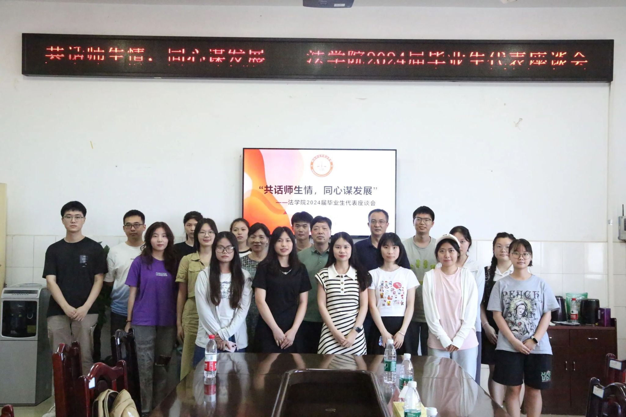 6月19日下午,yl8cc永利官网于文科楼B507室召开“共话师生情,同心谋发展”2024届毕业生代表座谈会。yl8cc永利官网党总支书记杨家骏,党总支副书记罗耒英,副院长罗文正,辅导员蒋秋琼、黄梓芸出席会议,2024届毕业生代表参与本次会议。