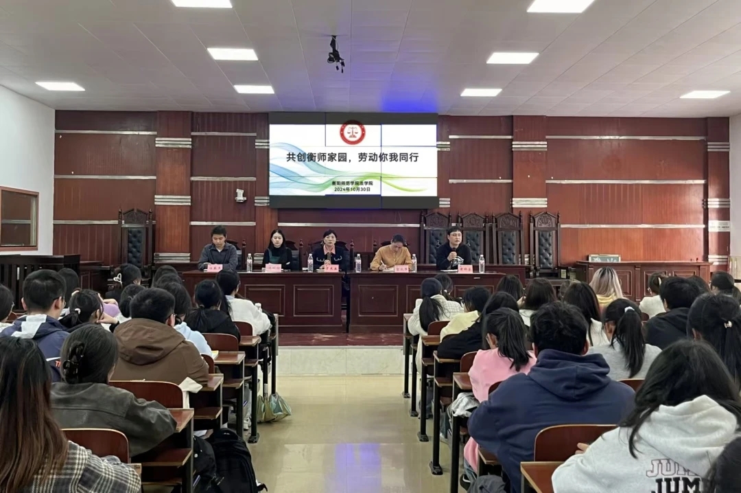 为确保“专家进校园”线下本科教育教学审核评估工作的顺利开展,打造优质学习环境。10月30日下午,yl8cc永利官网召开“共创衡师家园,劳动你我同行”班委工作会议,yl8cc永利官网党总支副书记罗耒英,学工办副主任兼团委书记黎兆萍及辅导员蒋秋琼、黄梓芸、任英杰出席会议并讲话,2022-2024级各班班委及团委学生会学习部和生活部的全体成员参加此次会议。