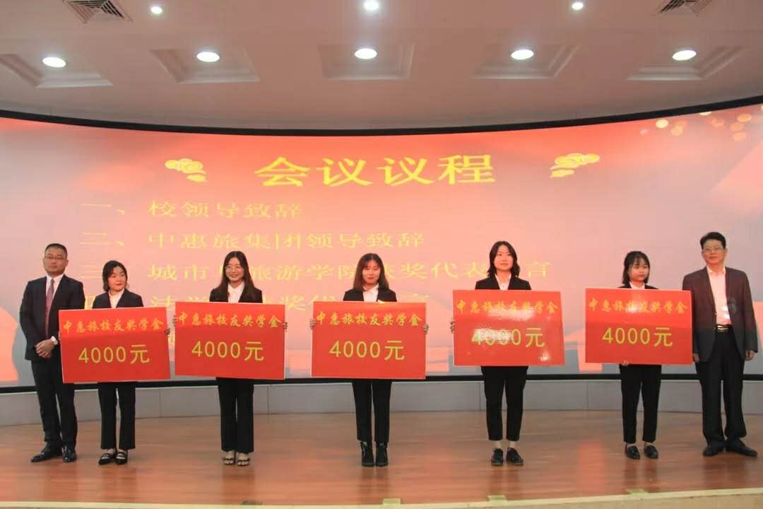 仪式最后,中惠旅智慧景区管理股份有限公司代表及我校领导为全体中惠旅校友奖学金获得者进行颁奖。仪式在热烈的掌声中圆满结束。