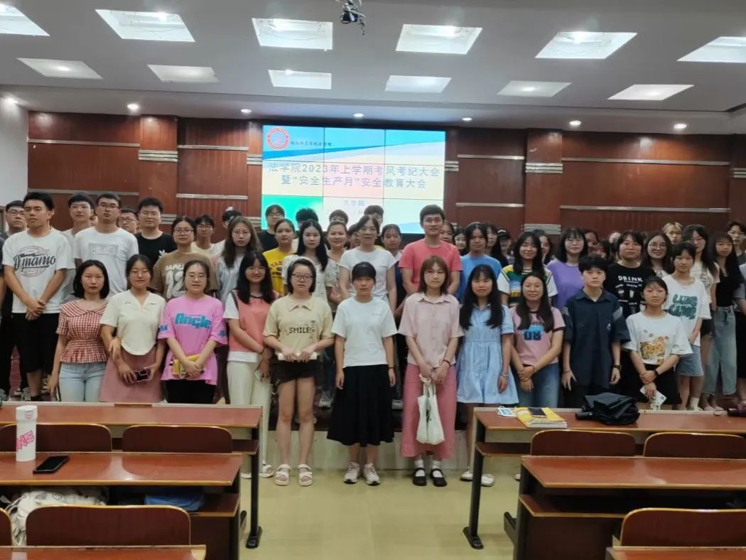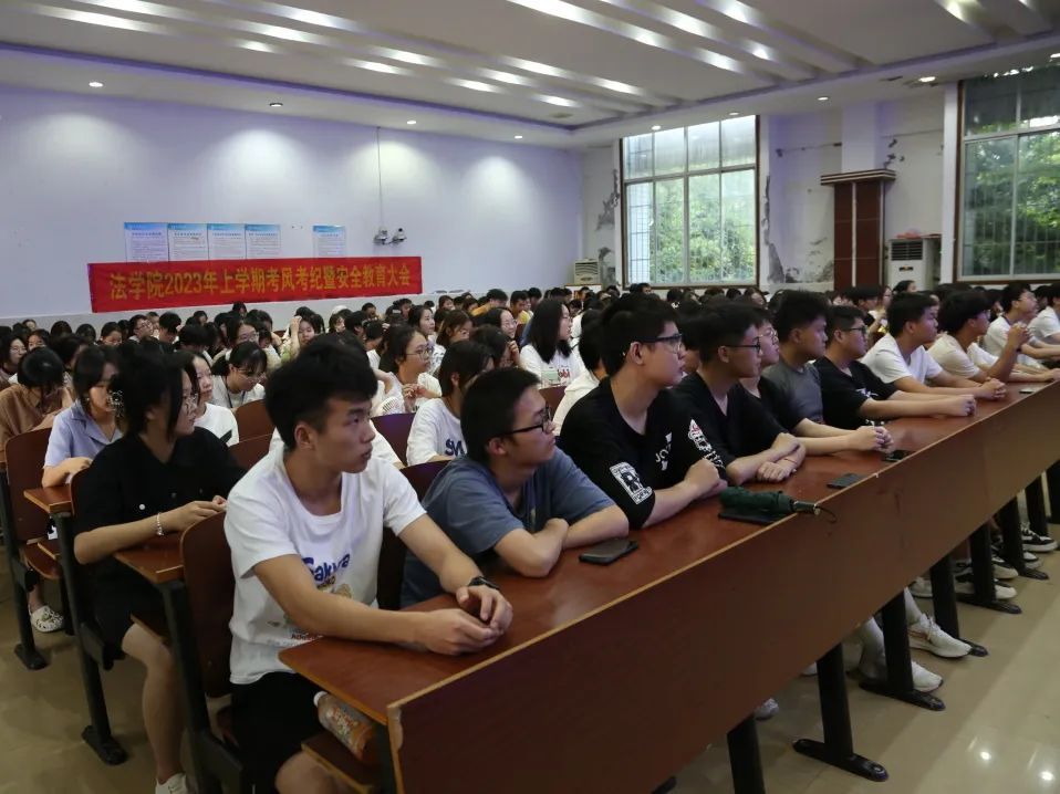 6月15日晚,yl8cc永利官网于东校区模拟法庭召开2023年上学期考风考纪大会暨安全教育大会。yl8cc永利官网党总支副书记罗耒英,辅导员肖润超、蒋秋琼出席此次会议,2021级和2022级全体同学分批次参加会议。