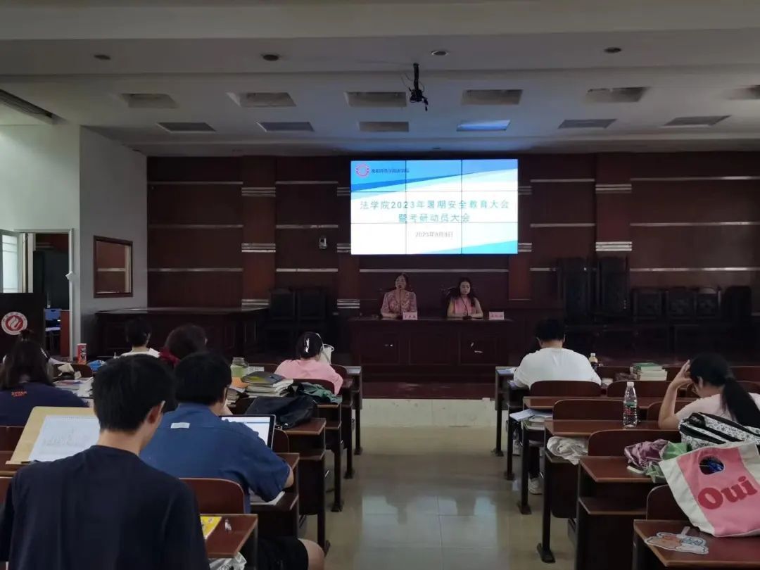 8月8日上午,yl8cc永利官网于模拟法庭开展暑期安全教育大会暨考研动员大会。yl8cc永利官网党总支副书记罗耒英、辅导员蒋秋琼出席本次会议,学院全体留校学生参加会议。