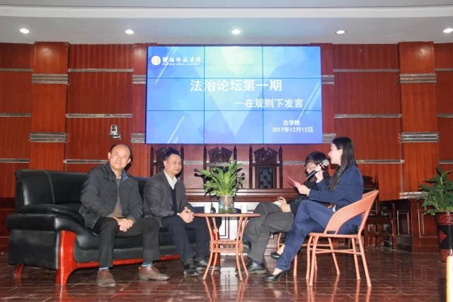 论坛现场,气氛热烈,肖老师诙谐幽默的语言引发全场一阵阵欢笑。三位嘉宾的循循善诱更是引起现场学生的深刻思考。就现场学生的提问,王老师指出“大学生评论社会热点是享受言论自由的表现,充分体现宪法精神,但前提必须是符合法律规定。随意造谣生事是肯定要接受法律制裁的”。