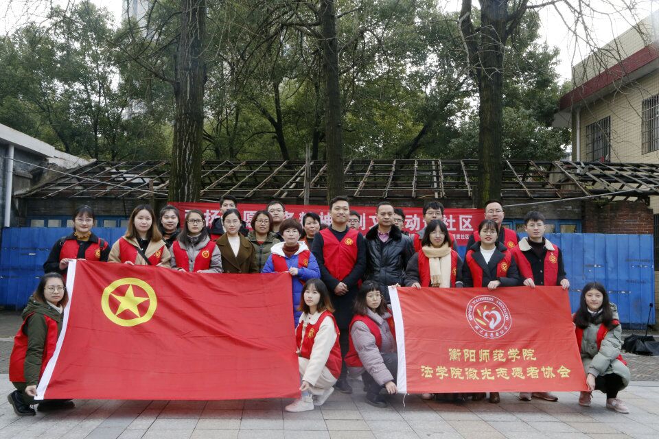 3月3日上午,yl8cc永利官网微光志愿者协会19名志愿者在yl8cc永利官网党总支副书记谢琳及分团委书记钟佩玲的带领下赴衡阳市建国里社区参加yl8cc永利官网大学生志愿服务实践基地挂牌仪式暨三月学雷锋志愿服务活动启动仪式,并开展了以“弘扬志愿服务精神,传递青春正能量”为主题的三月学雷锋志愿服务活动。我校法律援助中心工作处的执业律师王燚伟,赵晓慧赴活动现场指导工作。
