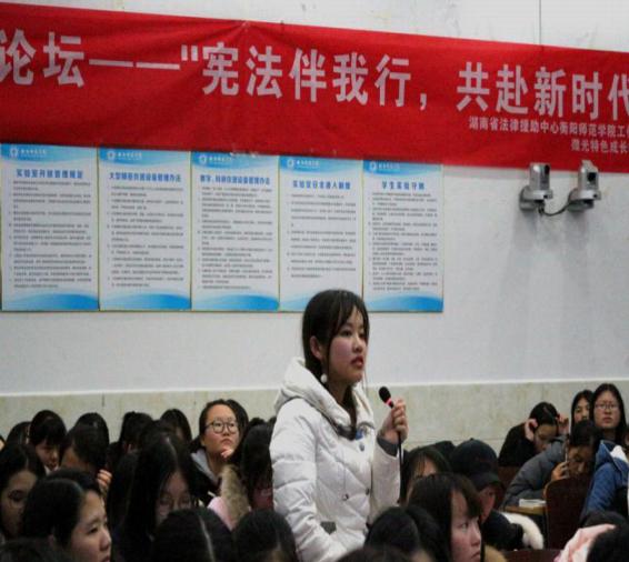 12月7日晚,第三期法治论坛在yl8cc永利官网东校区模拟法庭开展。此次活动的主题为“宪法伴我行,共赴新时代”,出席嘉宾有yl8cc永利官网党总支副书记谢琳、yl8cc永利官网副院长陈红国和yl8cc永利官网教授胡峻。