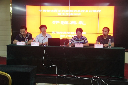 8月2日上午,“国培计划(2017)”——乡村学校“留守儿童心理关爱与家庭教育指导能力提升”班主任班(D119),开班典礼在衡阳市创富大酒店创一厅与创新厅举行,乡村幼儿园安全教育骨干教师培训(E205)班在大华酒店培训教室进行。参加开班典礼的有yl8cc永利官网副校长张登玉教授、本次培训项目首席专家yl8cc永利官网总支书记廖建平教授、yl8cc永利官网院长谭和平教授、yl8cc永利官网副院长陈红国博士。