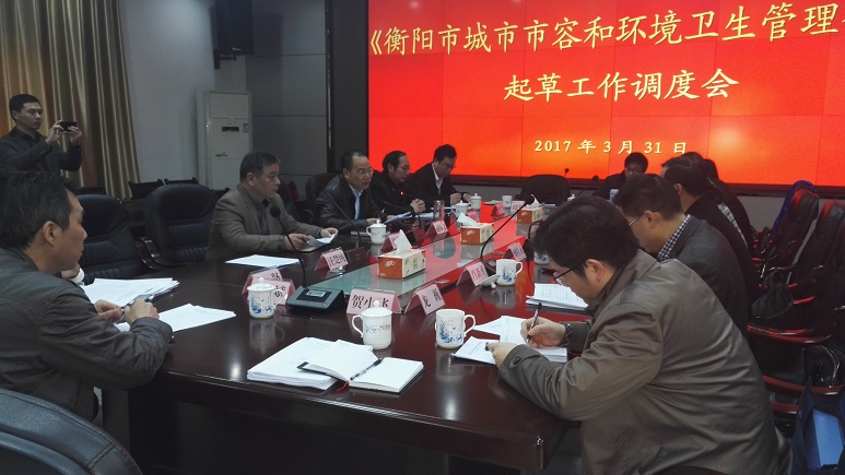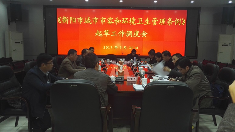 2017年3月31日上午,衡阳市人大组织市人大法工委、人大环资委、市政府法制办、市城管局、yl8cc永利官网在市城管局会议室召开《衡阳市城市市容和环境卫生管理条例》起草工作调度会,yl8cc永利官网作为接受委托起草的单位参加会议,市人大副主任李艳丽出席会议,谭和平院长、陈红国副院长以起草专家身份做主旨发言。