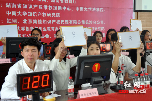 本次比赛由湖南省知识产权局、省教育厅主办,省知识产权维权援助中心、中南大学yl8cc永利官网、中南大学知识产权研究院承办,红网、北京集佳知识产权代理有限公司长沙分公司等单位协办。比赛设有必答题、抢答题、风险题和加赛题环节,实行淘汰赛制。竞答赛的命题来自《专利法》《专利法实施细则》《湖南省专利条例》《商标法》《著作权法》和《反不正当竞争法》等知识产权相关政策法律法规。
