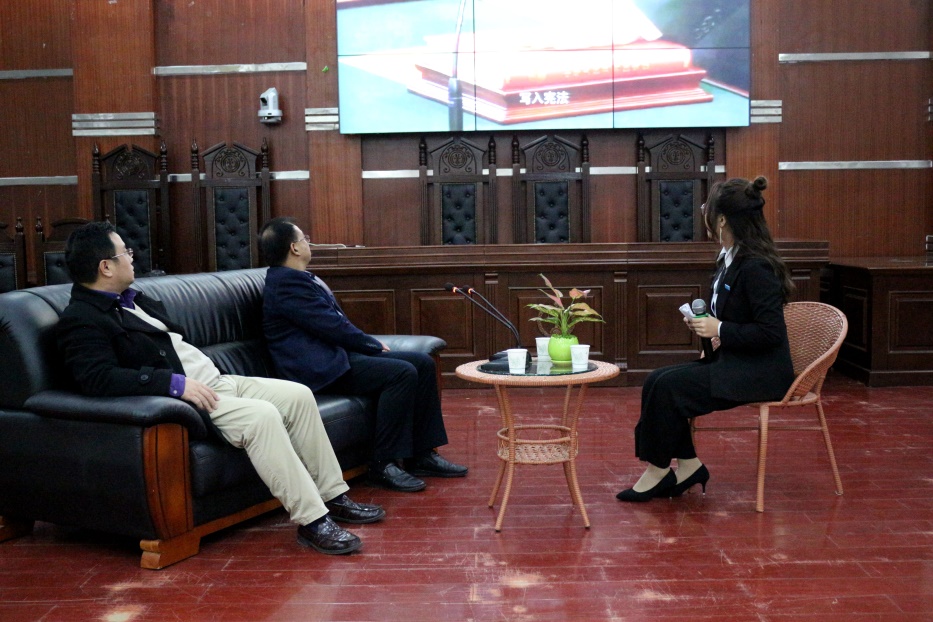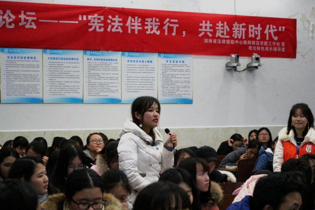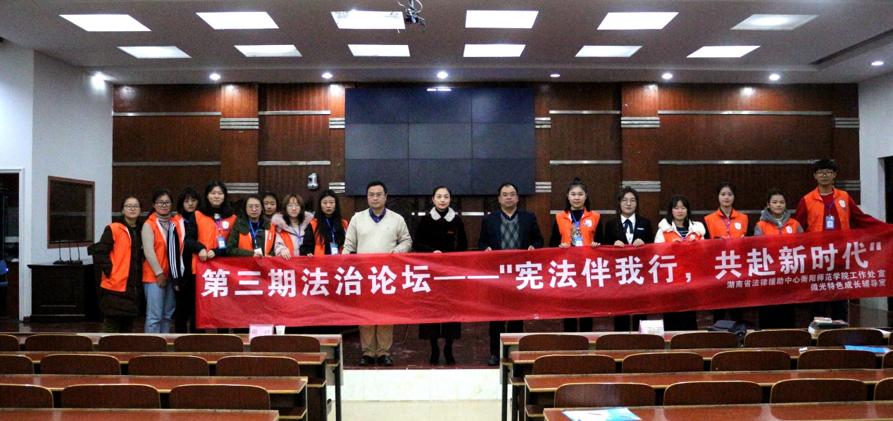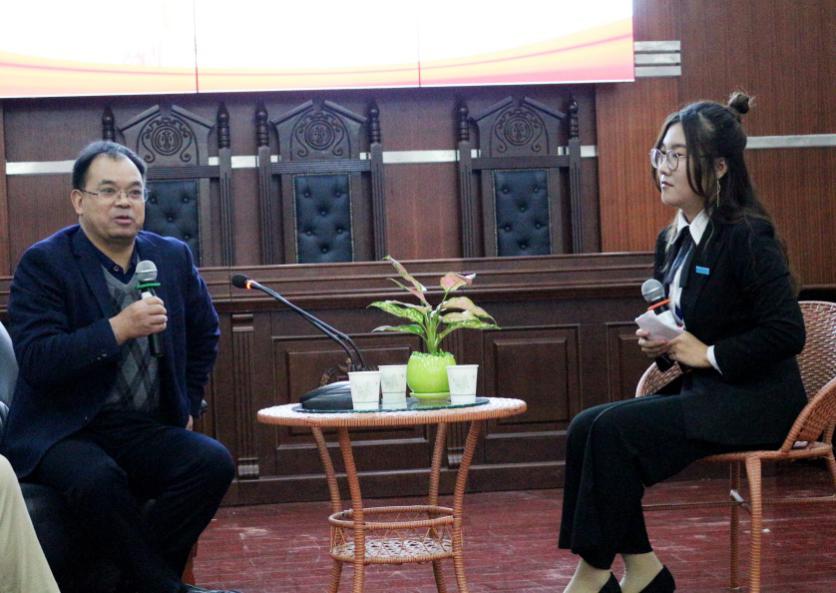 12月7日晚,第三期法治论坛在yl8cc永利官网东校区模拟法庭开展。此次活动的主题为“宪法伴我行,共赴新时代”,出席嘉宾有yl8cc永利官网党总支副书记谢琳、yl8cc永利官网副院长陈红国和yl8cc永利官网教授胡峻。