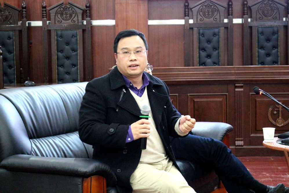 就宪法修正的问题,胡峻教授向同学们分享自己对宪法修正案的看法和见解。首先,胡俊教授赞同陈红国副院长的宪法在于实践的观点,他说:“宪法的生命在于实施,宪法的权威也在于实施”。接着,胡俊教授通过之前将我国与美国宪法的对比,得出:宪法作为国家的根本大法,不能随意修改,但一旦修改便是时代的改革和进步的标志。今年宪法的修改是很有必要的,理由是:改革开放的需要;法制改革的需要;立法的需要。