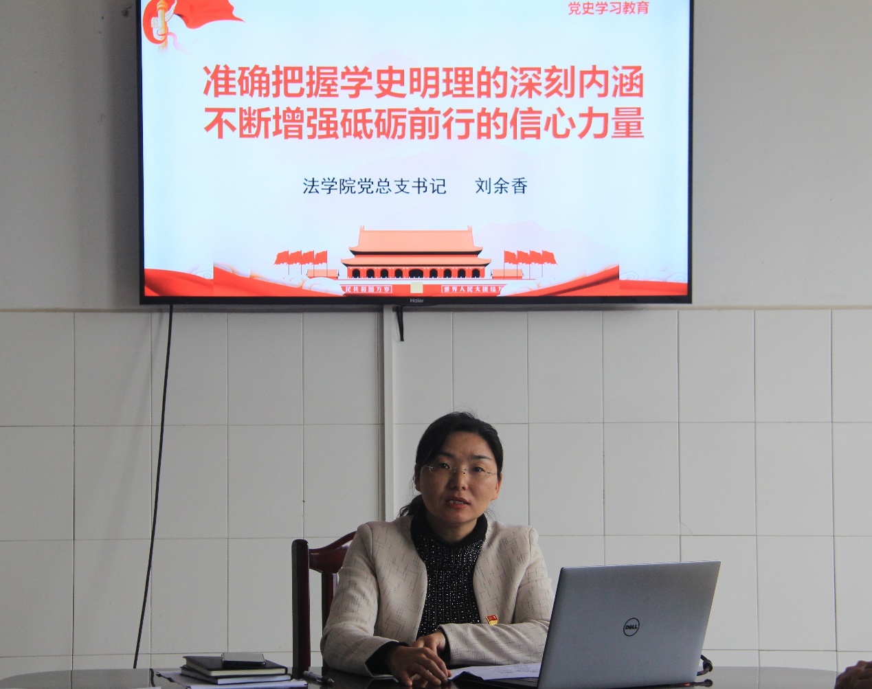 课上,党总支书记刘余香从习近平总书记在党史学习教育动员大会上提出的“学史明理、学史增信、学史崇德、学史力行”十六字目标出发,从三个方面概括本次党课的学习内容:一、把握历史规律,深刻认识共产党执政规律、社会主义建设规律、人类社会发展规律;二、把握理论逻辑,系统掌握中国共产党推进马克思主义中国化形成的重大理论成果;三、把握实践逻辑,准确领会中国共产党勇于进行具有许多新的历史特点的伟大斗争的宝贵经验。