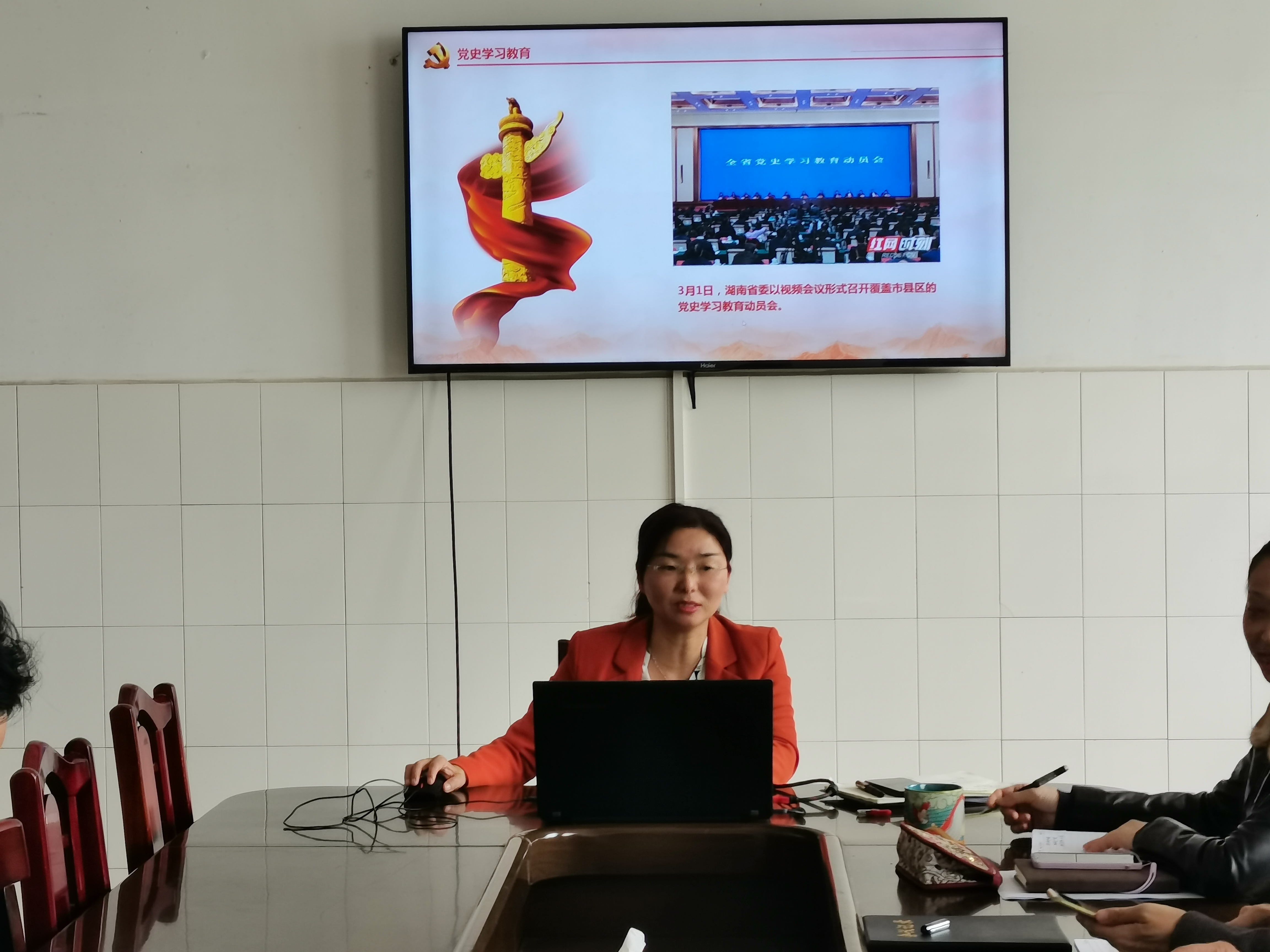 党总支书记刘余香向大家介绍了近期湖南省和衡阳市党史学习教育的相关活动及后续部署安排后,她讲到,本次学习分为三个方面:一、深入学习领会习近平总书记关于党的历史的重要论述,切实增强开展党史学习教育的政治自觉和行动自觉;二、认真研读党史基本著作,全面了解中国共产党百年奋斗的光辉历程和历史贡献;三、把握百年党史与衡阳巨变的联系,深刻感悟百年党史衡阳篇章的作为与担当;四、深刻把握党史学习教育的重点要点,不断从党的光辉历史中汲取砥砺奋进的智慧和力量。