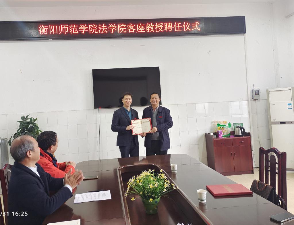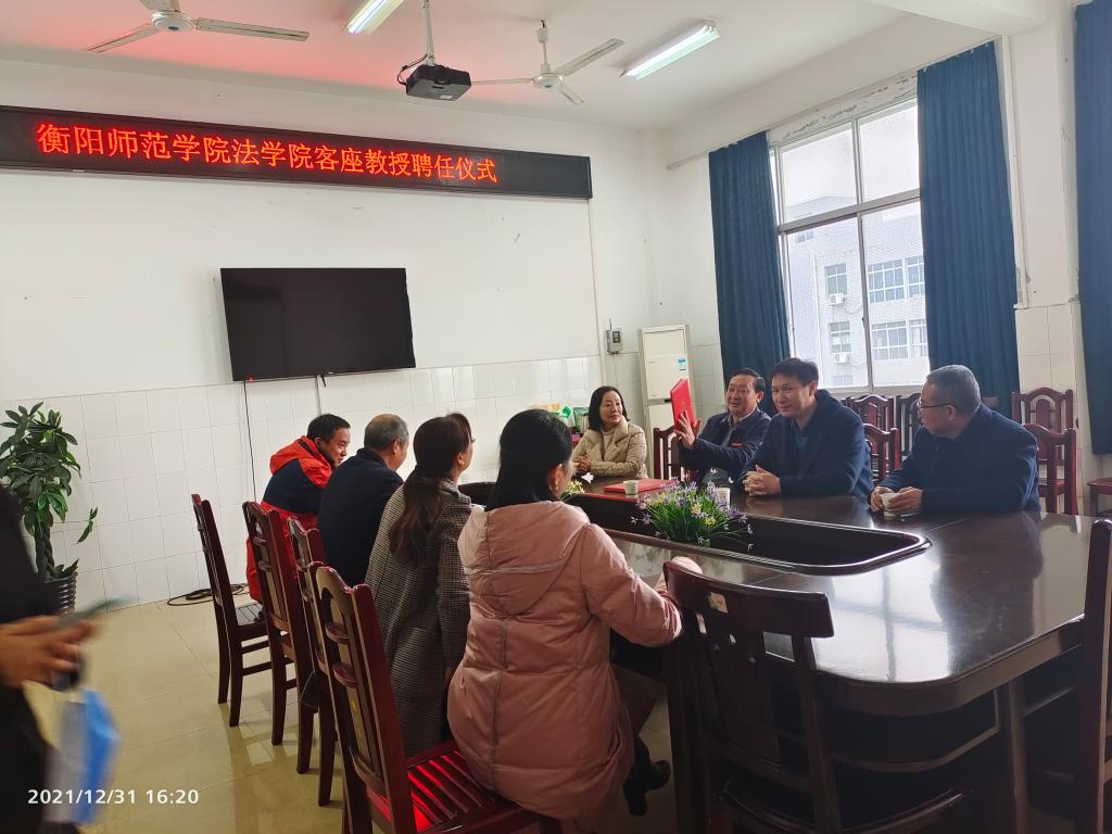 2021年12月31日下午,校党委副书记刘福江率校友办一行,在yl8cc永利官网会议室为2002级校友魏旭兰律师举行客座教授聘任仪式。yl8cc永利官网全体班子成员出席,聘任仪式由yl8cc永利官网院长刘余香主持。