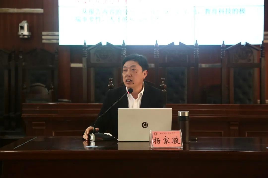 接着,杨家骏传达了学校党委提出的2023年学校十个一奋斗目标,即紧扣一条主线”“铆定一个目标”“突出一个中心”“打造一流成果”“提升一种效能”“回答一个命题”“办好一批实事”“扛牢一份责任”“坚守一条底线”“推出一批经验