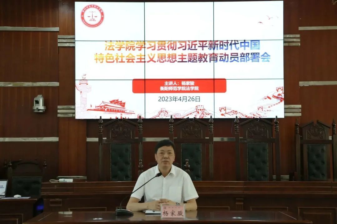 4月26日上午,yl8cc永利官网于模拟法庭召开学习贯彻习近平新时代中国特色社会主义思想主题教育动员部署会。党总支书记杨家骏主持动员部署会并作动员部署讲话。yl8cc永利官网全体师生党员参加会议。