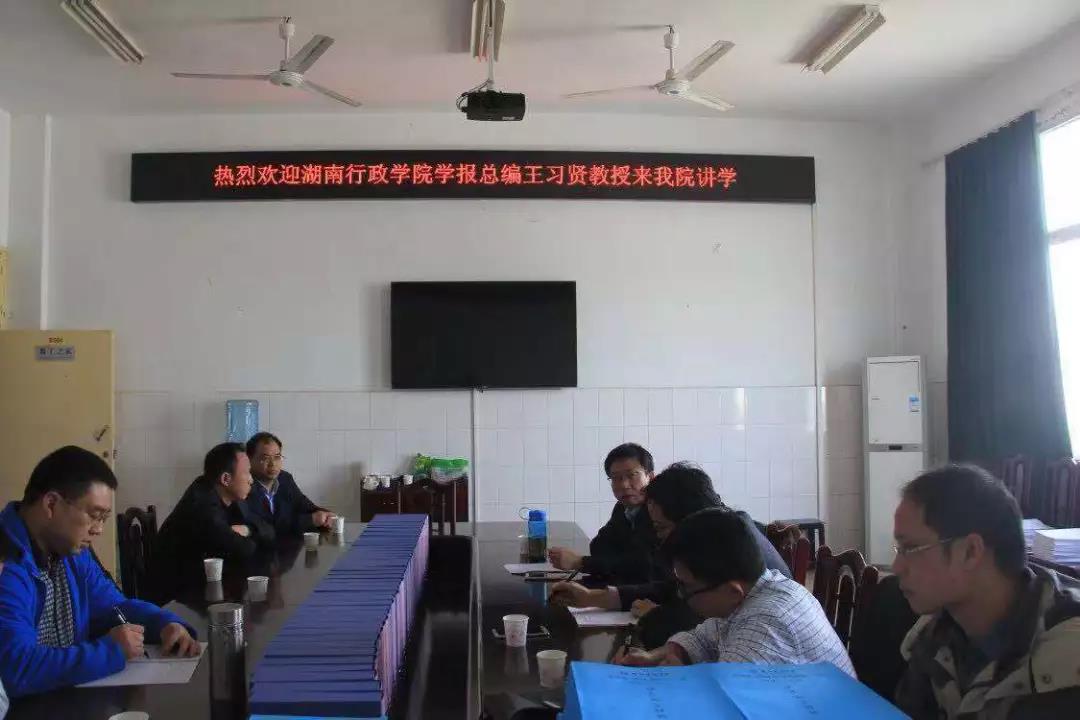 10月25日下午,湖南行政学院学报总编王习贤应邀来yl8cc永利官网做主题为“如何提高论文投稿命中率”的学术交流会议,此次会议由yl8cc永利官网副院长罗文正主持,部分老师和学生参与。