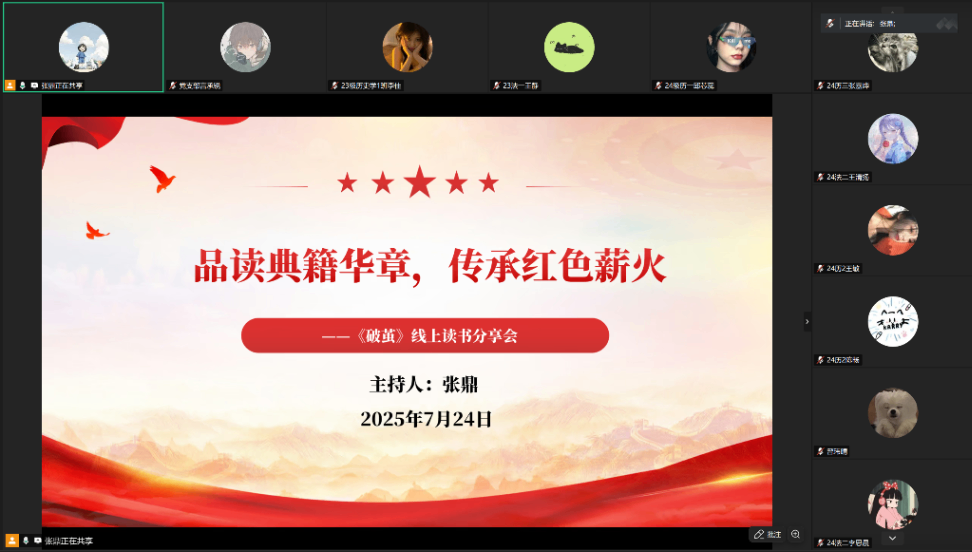 7月24日晚上19:30,yl8cc永利官网学生党支部于腾讯会议开展此次“品读典籍华章 传承红色薪火”线上读书分享会。此次活动由第71期部分入党积极分子参加,张鼎担任主持人。