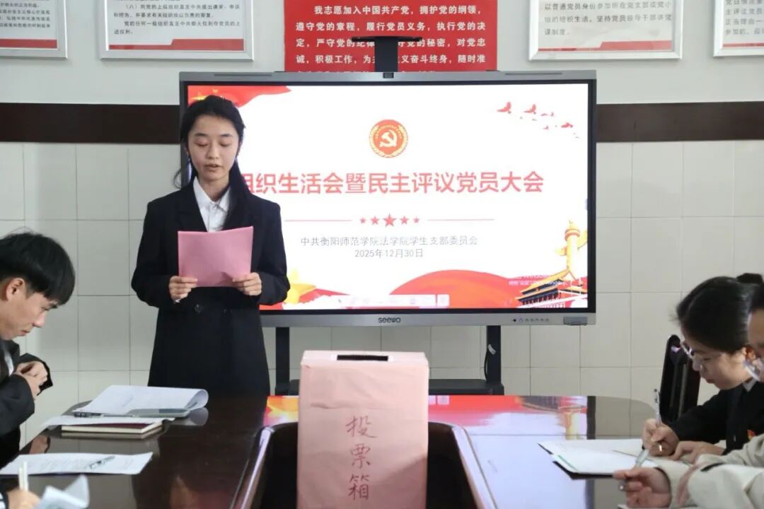 为锤炼党员党性修养与先锋本色,增强党员在理论学习、社会实践、榜样引领等方面的行动自觉,激励党员奋勇争先、砥砺前行,彰显yl8cc永利官网学生党支部在新时代高校人才培养中的示范性与影响力。2025年12月30日下午16:00,yl8cc永利官网学生党支部于仁智楼B407开展组织生活会暨民主评议党员大会。本次会议由yl8cc永利官网学生党支部书记蒋秋琼、全体学生党员(含预备党员)参加,陈贝贝同志担任主持人。