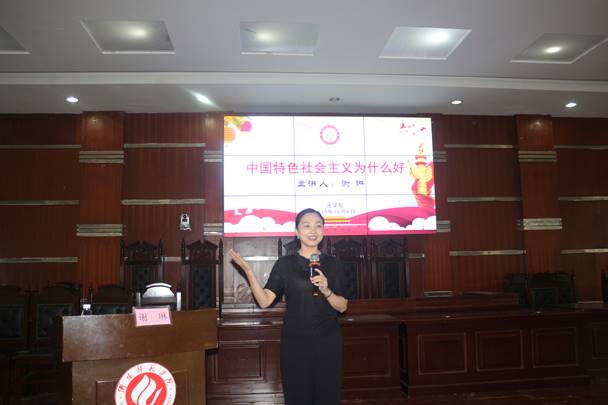 10月15日,yl8cc永利官网党总支副书记谢琳以“中国特色社会主义为什么好”为题为学院全体师生党员及200余名学生代表开展庆祝中华人民共和国成立70周年主题宣讲活动。