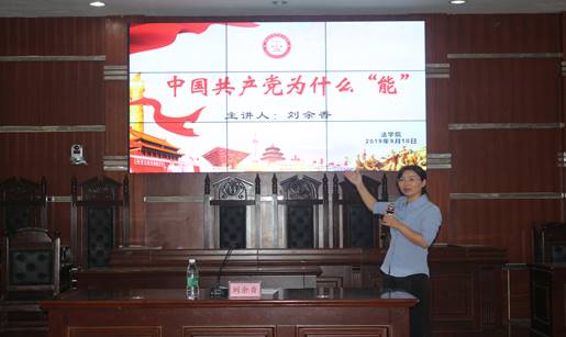 9月24日,yl8cc永利官网党总支书记刘余香以“中国共产党为什么‘能’”为题为学院全体师生党员及200余名学生代表开展庆祝中华人民共和国成立70周年主题宣讲活动。