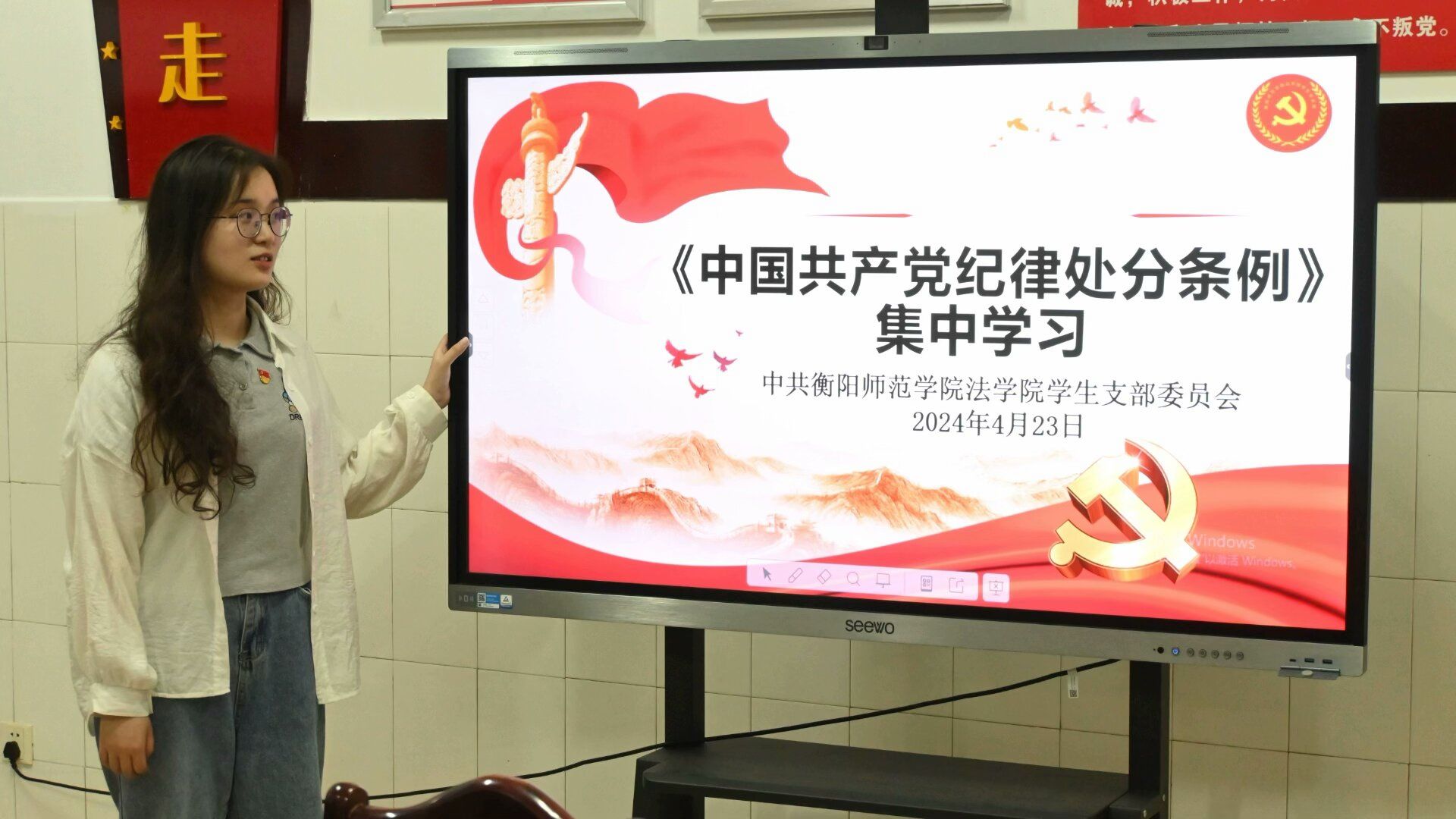 4月23日晚上19:30,yl8cc永利官网学生党支部积极响应上级党组织工作部署,组织全体学生党员于文b407开展集中《中国共产党纪律处分条例》集中学习,本次集中学习由学生党员吴斐仪主持。