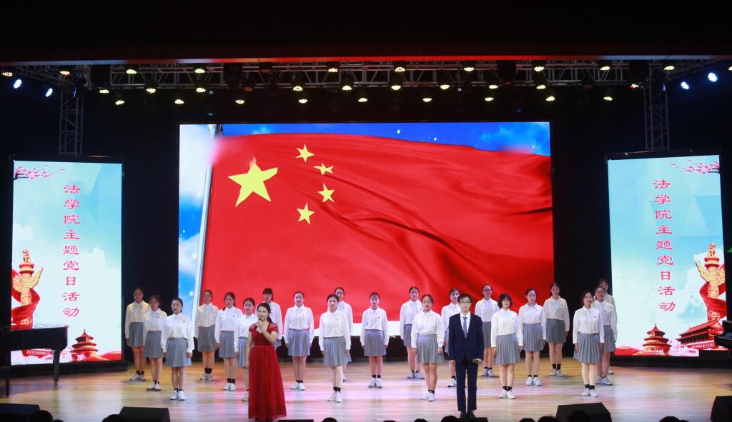 诵唱会在暖场短片《新中国砥砺奋进的七十年》的播放中拉开序幕。活动以新中国成立70年来的发展变化为轴,分“见证”“致敬”和“展望”三个篇章展开。在第一篇章中,诗朗诵《青春中国》、情景剧《伟大的祖国,万岁!》、歌舞《中华之魂》分别用不同的艺术形式展现了祖国的豪迈与强大,表现了中华民族传承千年的精神与魂魄。第二篇章中,朗诵《祖国母亲,向您致敬》、小品《永远的军人》、小组唱《强国一代有我在》等节目深情地表达了对祖国的致敬与赞美,歌颂了投身于祖国建设事业、维护祖国繁荣与和平的奋进者、守卫者,展现了新时代青年的坚定与自信。第三篇章中,歌舞《领航中国》、齐诵《不忘初心,牢记使命》、情景剧《牢记长征苦,奋斗新时代》在回首建党、建国初期那段艰难岁月的同时,讴歌了新中国成立70年来的丰功伟绩,让大家深刻体会到如今美好生活的来之不易。情景剧最后,全体起立,新党员宣誓、老党员重温誓词的环节将整场活动推向了高潮。随着活动最后的大合唱《不忘初心》,师生们更加坚定地意识到新时代青年肩负着的历史使命与担当。