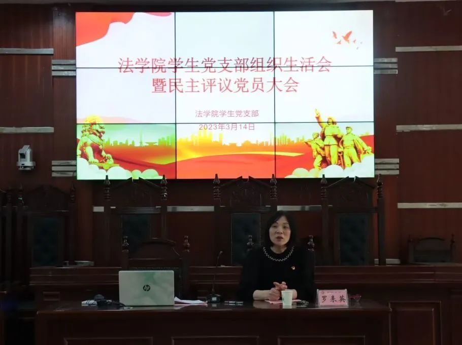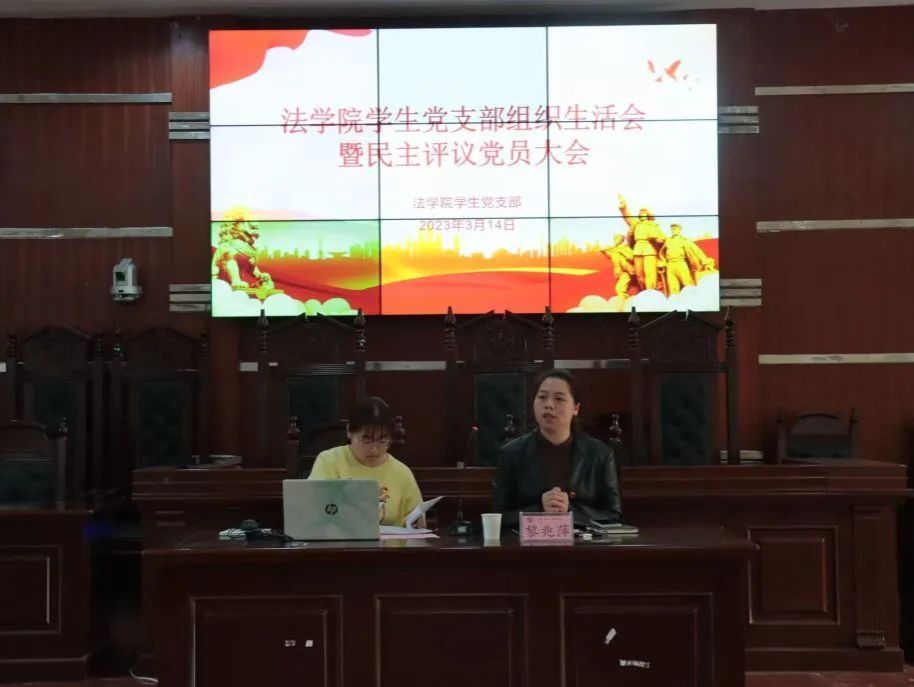 2023年3月14日下午,yl8cc永利官网于模拟法庭召开yl8cc永利官网学生党支部组织生活会暨民主评议党员大会。yl8cc永利官网党总支副书记罗耒英、学生党支部书记黎兆萍以及全体学生党员参加本次会议。