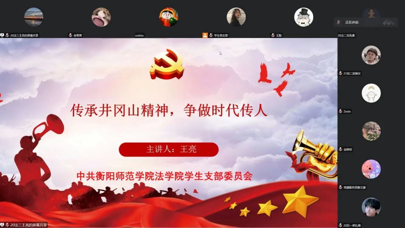 11月8日晚19:30,yl8cc永利官网学生党支部开展了“传承井冈山精神,争做时代传人”线上主题党课。此次党课全部学生党员参与,由yl8cc永利官网学生党员王亮讲授党课,2022级历史学3班钟毓嘉担任主持人。
