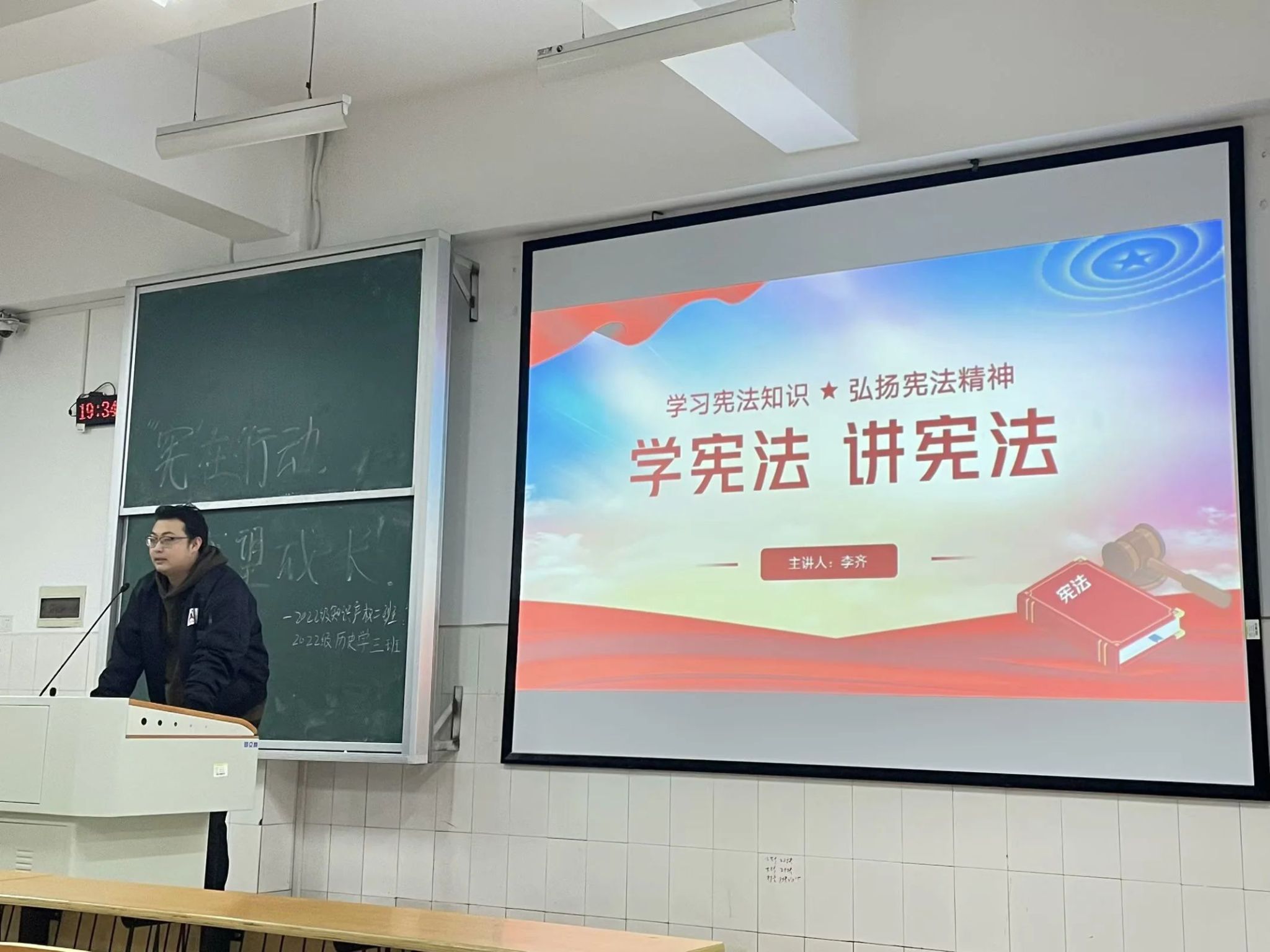 12月3日,yl8cc永利官网学生党支部宪法宣讲团成员走进各个班级,借助精心制作的PPT为同学们带来了一堂别开生面的宪法知识讲解课。