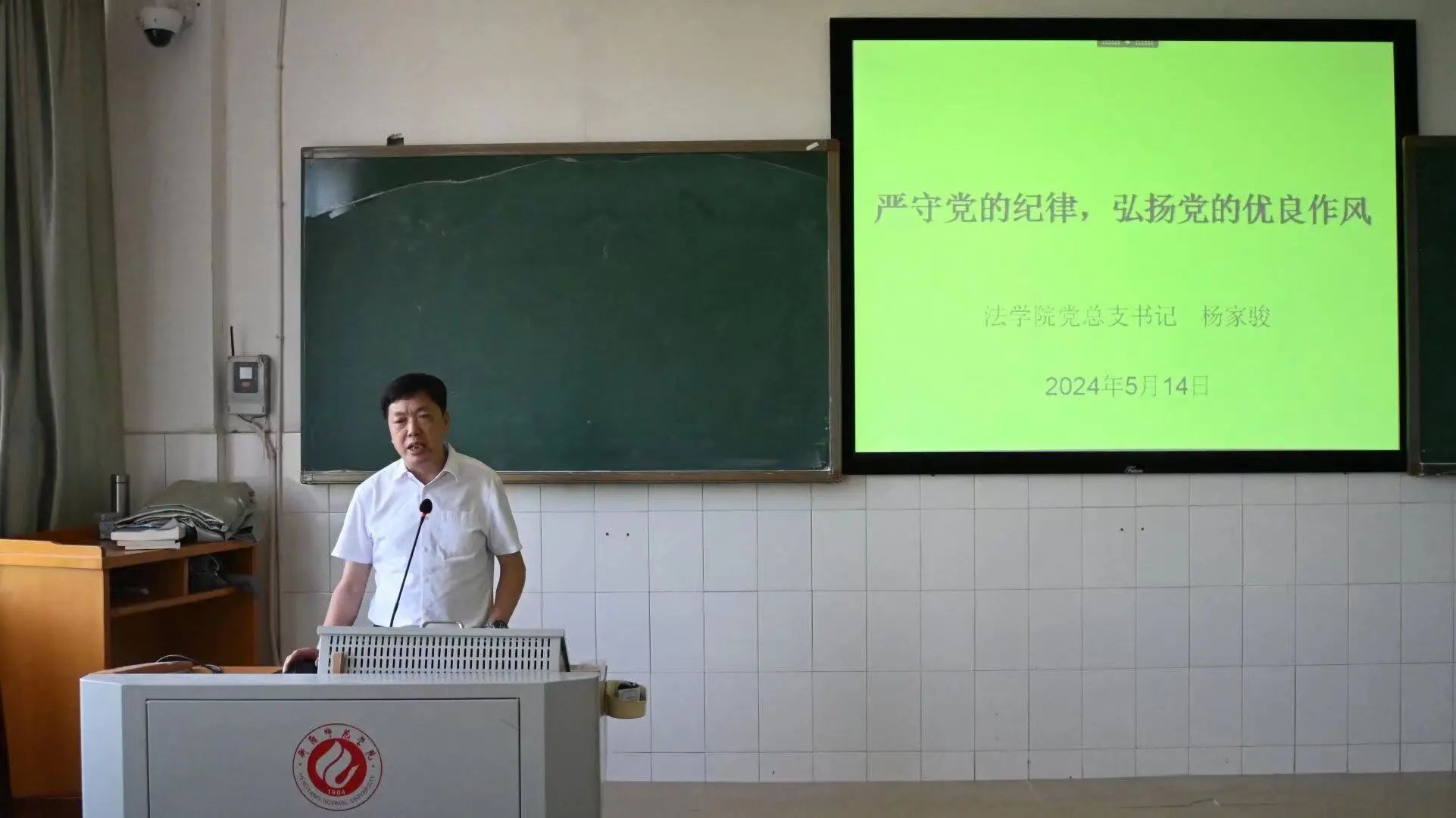 5月14日,yl8cc永利官网党总支书记杨家骏以“严守党的纪律,弘扬党的优良作风”为题在文综楼教室主讲专题党课,学院全体教职工党员、学生党员与主要学生干部聆听了本次党课。
