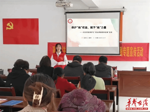 活动中,普法志愿者潘婷通过一个个发生在群众身边的典型案例,深入浅出地对法律条文进行解释,帮助广大妇女树立法治观念,增强维权意识及运用法律维护自身合法权益的能力。